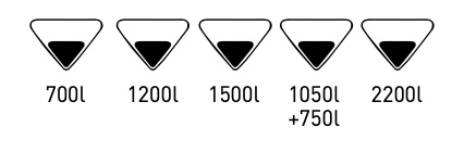 Our ‘Liquid’ range offers capacities from 700 to 2200 liters with single or double product versions.